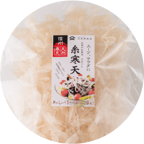 寒天の里、信州で100年つづく天然糸寒天のショップです。 良質な天草を100%使い、昔ながらの伝統製法・天日干しでつくる、 安全・安心な本物の寒天の味わいをお楽しみください。